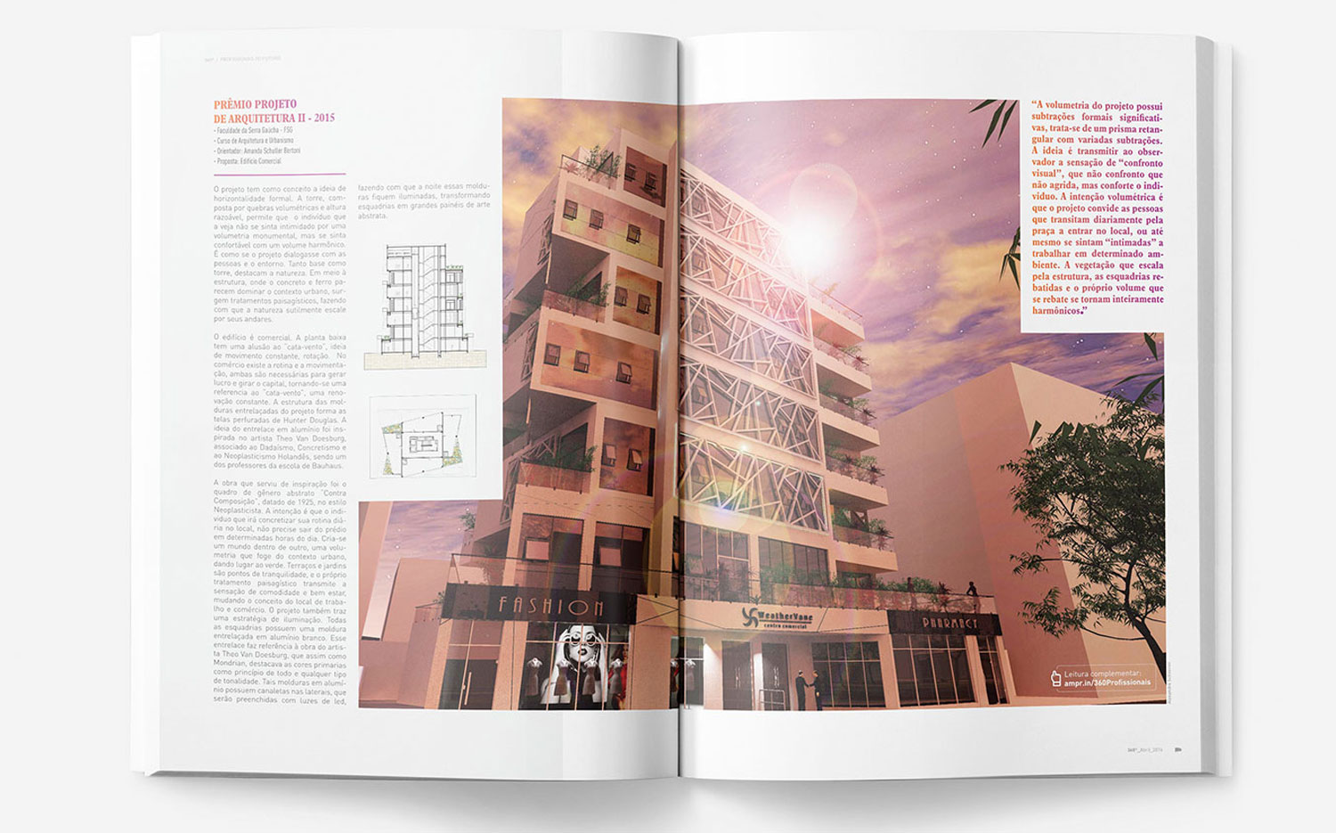Gráfico Editorial produzido pela AMPR Incorporadora (Serra Gaúcha). A 360º foi uma publicação semestral, que além do conteúdo próprio da empresa, possuia editorias como Viagem, Negócios, Gastronomia e Econômia.