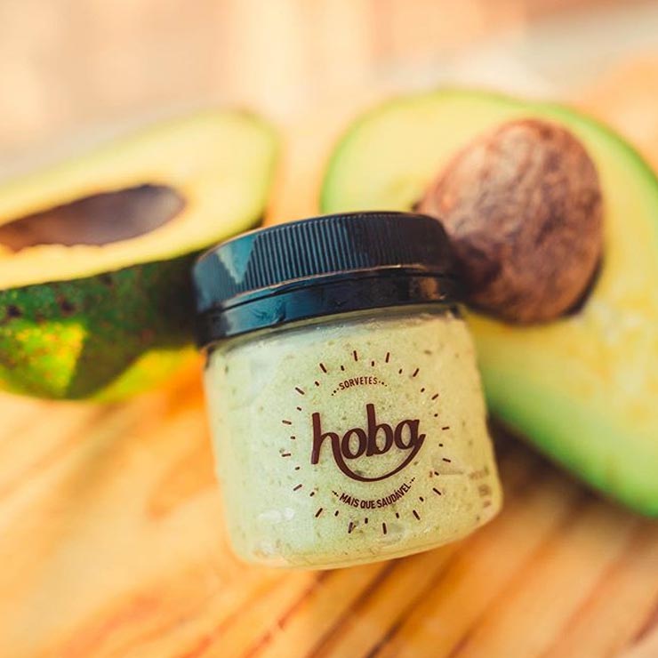 Nome e identidade de marca. A Hoba produz sorvetes 100% veganos, com insumos de produtores locais e usa elementos da cultura brasileira para, por exemplo, batizar os sabores dos seus sorvetes (paçoquinha).