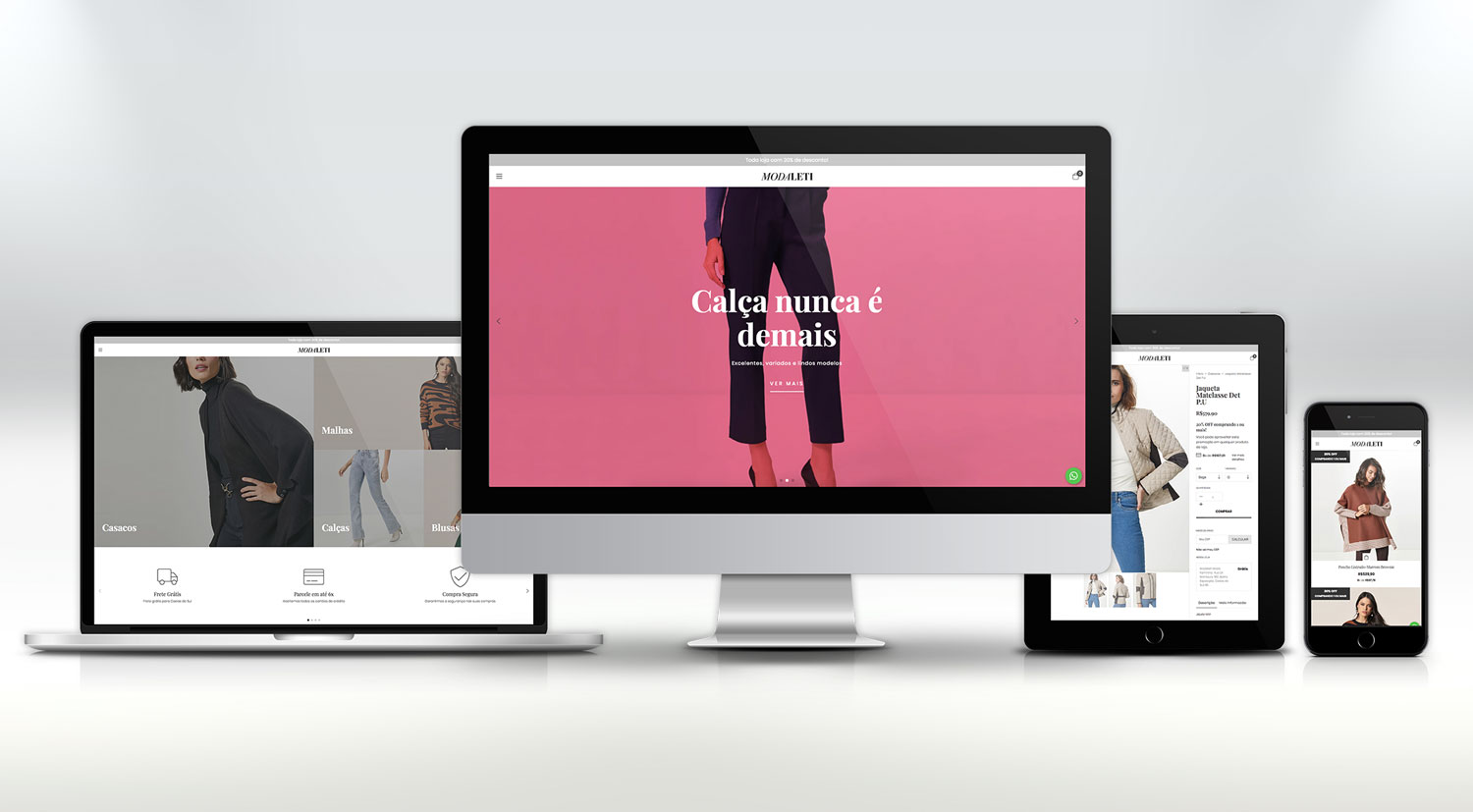 Para atualizar a marca e revigorar a imagem do negócio, aproximamos o visual da Modaleti à grandes marcas que orbitam o mundo fashion, como por exemplo a revista Vogue. Para a atualização não ser apenas cosmética, reinventamos o negócio com uma loja virtual rica em produtos, com design simples, atrativo e extremamente fácil de navegar.